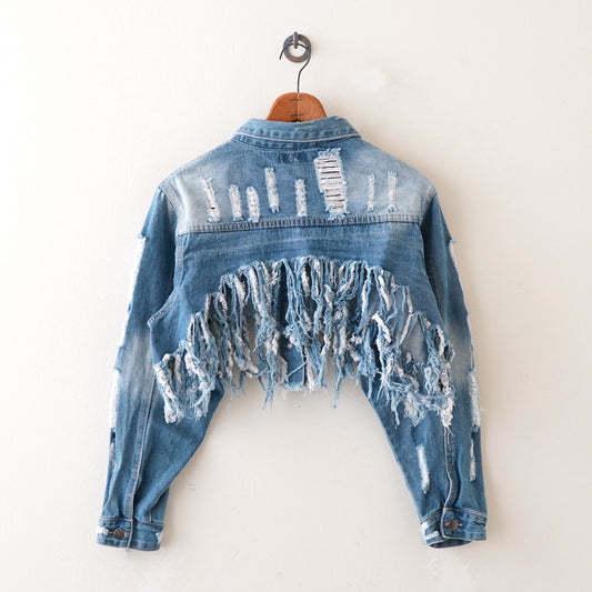 tassel design denim jacket