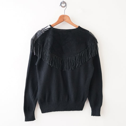 80s leather tassel sweater