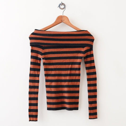 off shoulder striped sweater